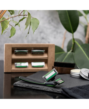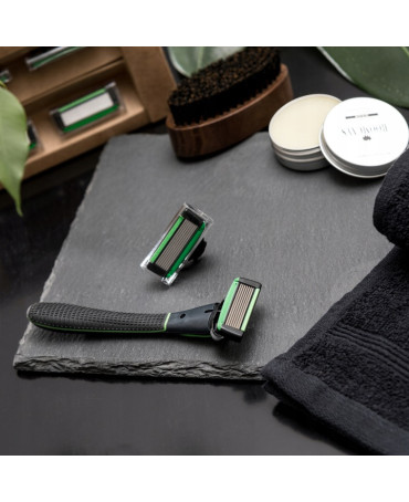W zestawie: uchwyt + 2 wymienne ostrza.