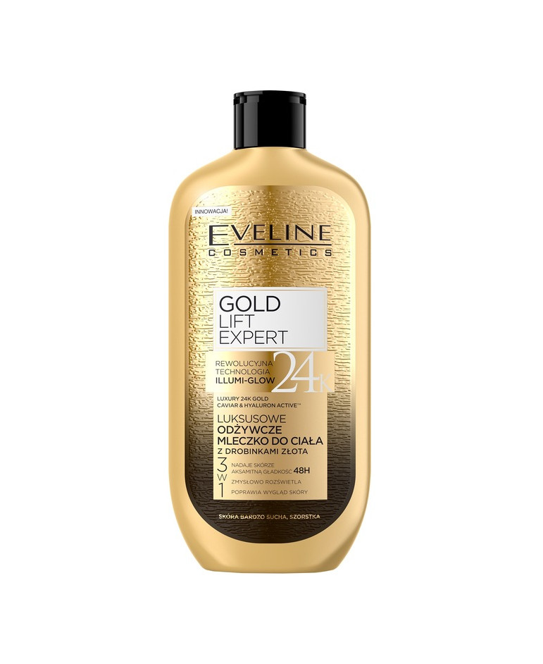 Eveline Mleczko do Ciała z Drobinkami Złota to luksusowy produkt, który nie tylko pielęgnuje skórę, ale także dodaje jej blasku i pięknego zapachu. Idealny dla każdego, kto chce zapewnić swojej skórze głębokie nawilżenie, odżywienie i ochronę przed starzeniem.