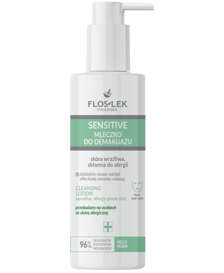 Floslek Sensitive Mleczko do Demakijażu to specjalistyczny dermokosmetyk stworzony z myślą o delikatnym, ale skutecznym oczyszczaniu skóry twarzy, szyi, dekoltu oraz okolic oczu. Idealny dla osób o skórze wrażliwej, z tendencją do alergii i atopii.