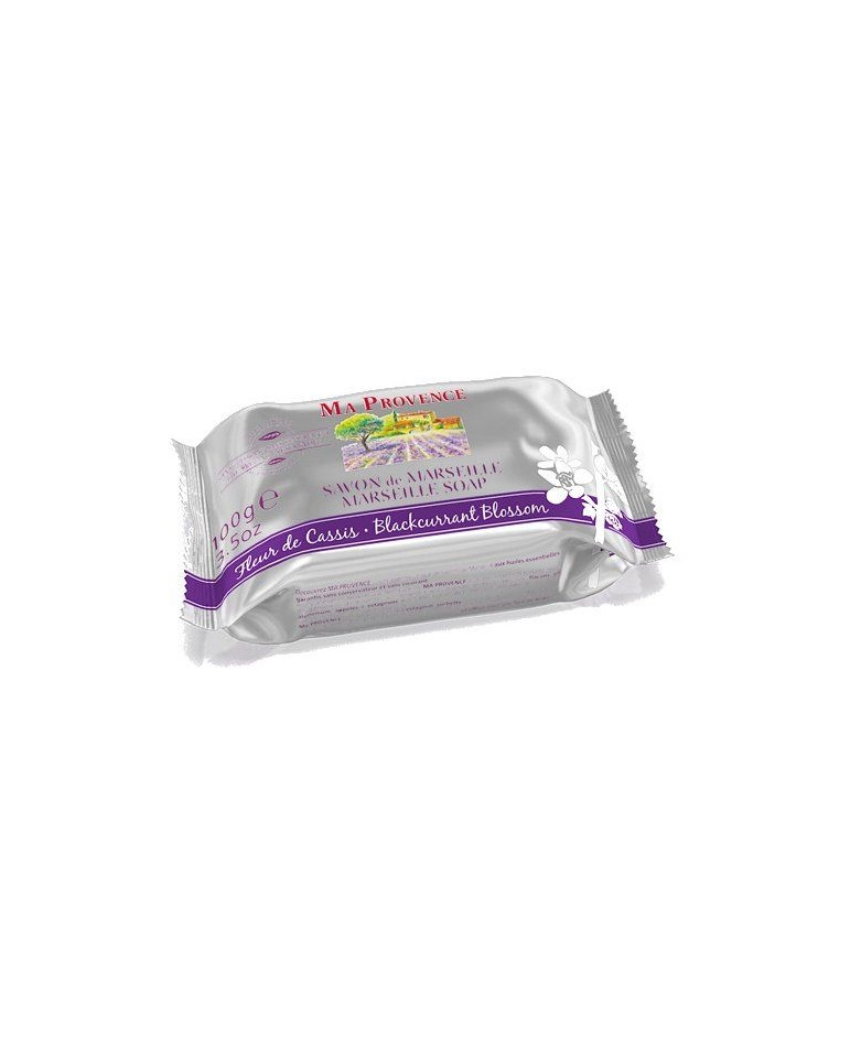 Klasyczne mydło marsylskie w kostce wzbogacone o naturalny, świeży zapach czarnej porzeczki, firmy MA PROVENCE.