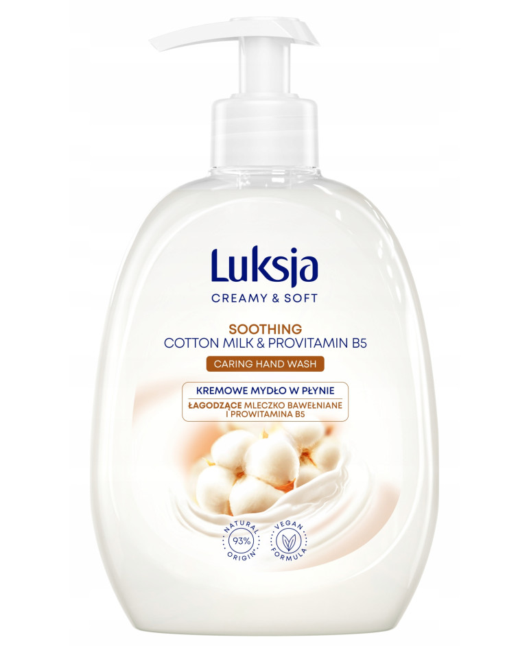 Łagodna formuła wzbogacona witaminą B5 i bawełną dla gładkich i delikatnych w dotyku dłoni.