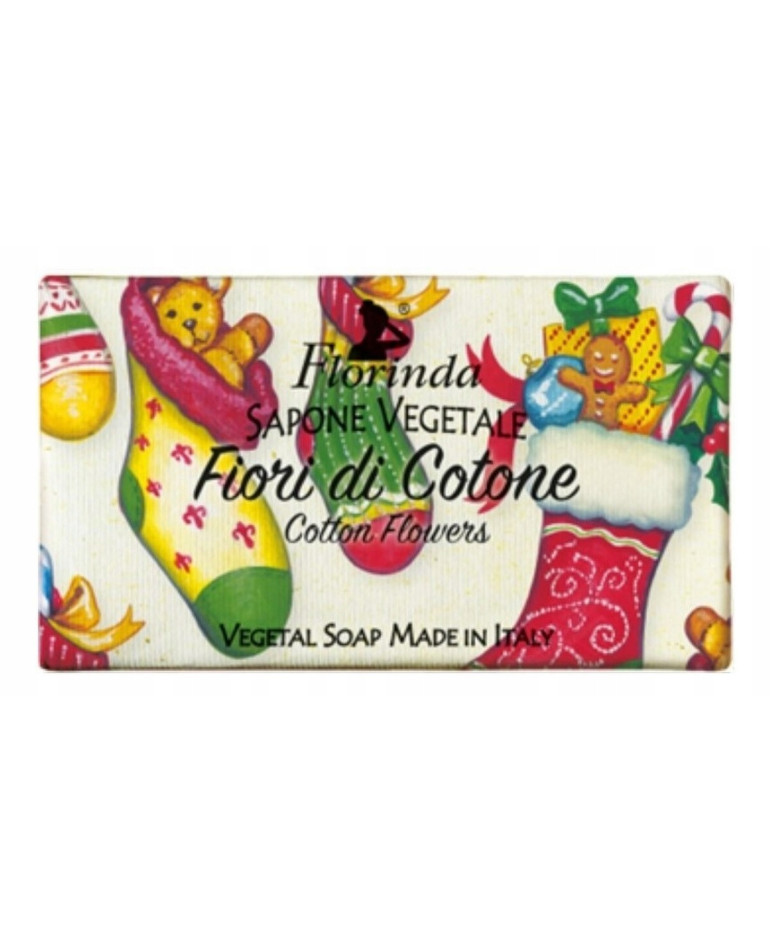 Florinda prezentuje wyjątkowe mydło z kolekcji Świątecznej o pięknym zapachu delikatnych kwiatów bawełny. To naturalne, ręcznie robione mydło z Włoch, wykonane wyłącznie z naturalnych olejów roślinnych, bez dodatku parabenów, parafiny, siarczanów i sztucznych barwników. Dzięki temu jest odpowiednie nawet dla skóry wrażliwej.