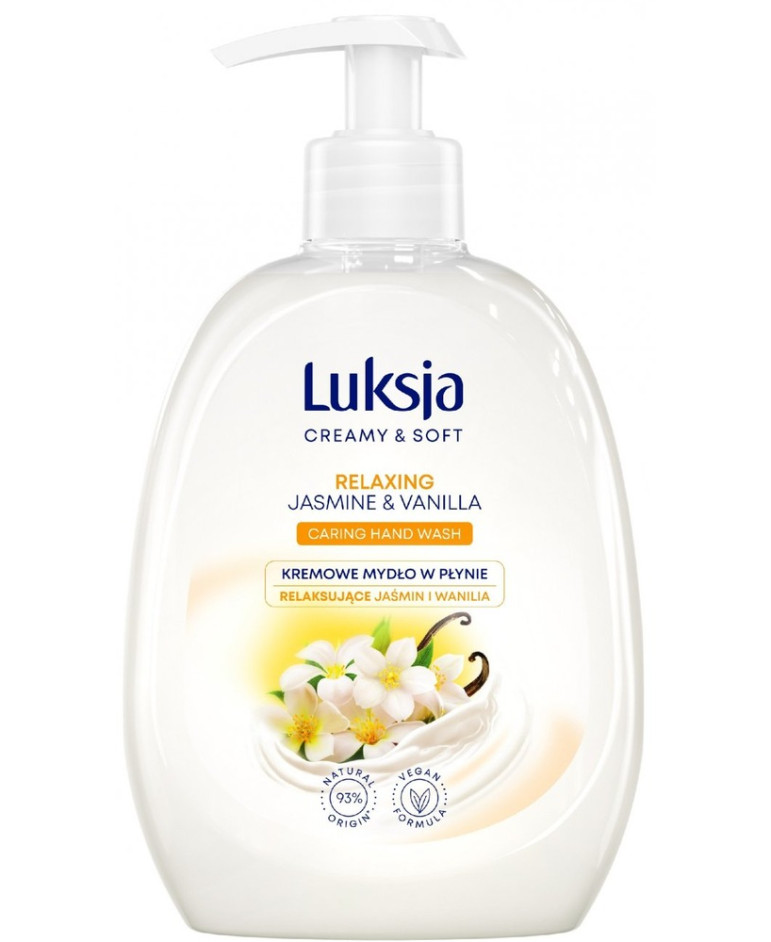 Kremowe mydło w płynie marki Luksja to idealnie aksamitna i przyjazna dla skóry formuła. Kosmetyk łagodnie i delikatnie oczyszcza skórę pielęgnując ją podczas każdej kąpieli. Specjalna formuła oparta na prowitaminie B5 wspomaga długotrwałe nawilżenie oraz gwarantuje miękkość skóry.