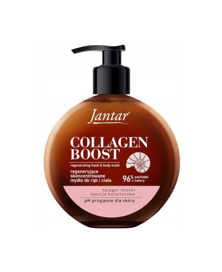 Regenerujące mydło do rąk i ciała Collagen Boost to nowy wymiar pielęgnacji dla Twoich dłoni. Słowo „Boost” oznacza wzmocnienie efektu, który uzyskujemy dzięki połączeniu esencji bursztynowej i kolagenu.