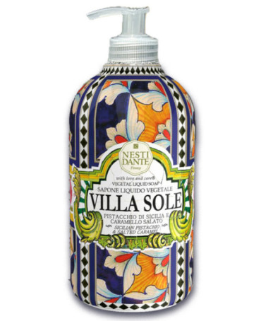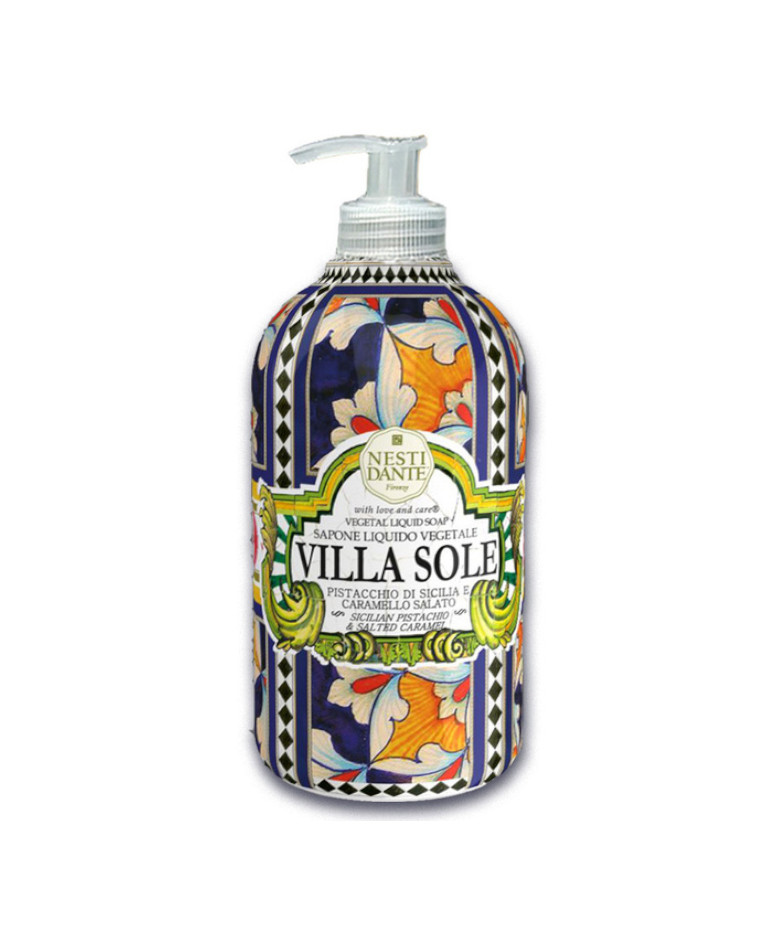 Nesti Villa Sole Sicilian Pistachio and Caramel Liquid Soap to płynny środek czyszczący inspirowany zapachami i kolorami wybrzeży Morza Śródziemnego. Jego wyjątkowy i otulający zapach, uzyskany dzięki połączeniu słodkiej sycylijskiej pistacji i słonego karmelu, daje uczucie dobrego samopoczucia i ciepła przy każdym myciu.