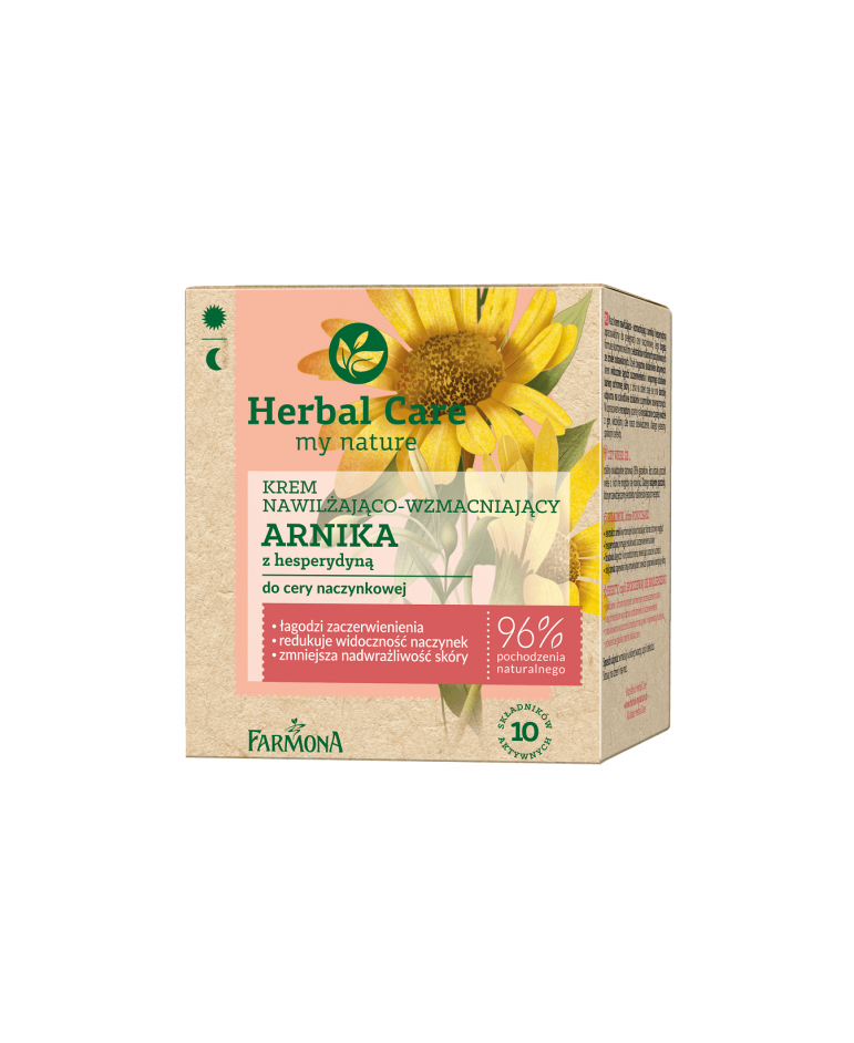 Nasz krem nawilżająco – wzmacniający z arniką i hesperydyną opracowaliśmy do pielęgnacji cery naczynkowej. Jego bogatą formułę skomponowaliśmy z ekstraktów roślinnych pozyskiwanych ze źródeł odnawialnych.