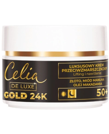 Wyjątkowy krem przeciw zmarszczkom przeznaczony do pielęgnacji skóry dojrzałej powyżej 50. roku życia. Zawiera w sobie 24-karatowe złoto oraz drogocenny miód manuka, które głęboko wnikają w skórę, redukując nawet głębokie zmarszczki i intensywnie nawilżając ją. Działanie kremu wspomagają oligosacharydy, które wygładzają skórę, zmniejszając widoczność zmarszczek i linii mimicznych, zapewniając jednocześnie natychmiastowy i długotrwały efekt liftingu. Olej z orzechów makadamia, bogaty w jednonienasycone kwasy tłuszczowe, dodatkowo odżywia, zmiękcza i nawilża skórę.