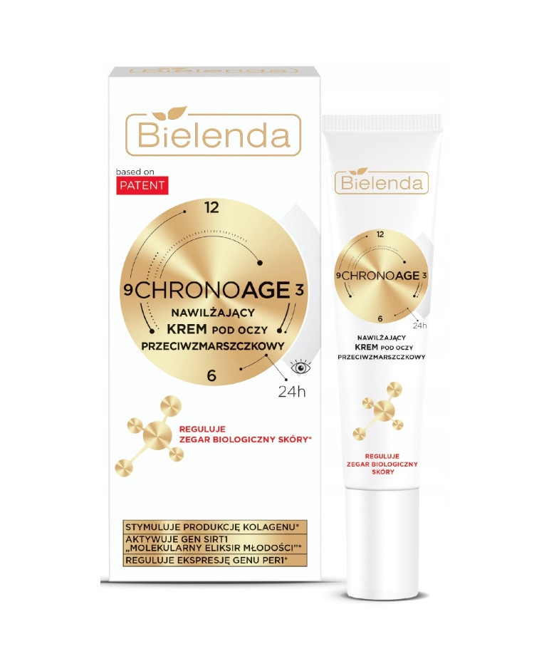 Wygładza i wspomaga proces regeneracji skóry. Nawilżający krem przeciwzmarszczkowy pod oczy Bielenda Chrono Age 24H to doskonałe wsparcie dla delikatnej skóry wokół oczu. Dzięki swojej formule opartej na epigenetycznym kompleksie oraz działaniu w harmonii z naturalnymi procesami regeneracyjnymi skóry, krem intensywnie nawilża, ujędrnia i wygładza skórę, przynosząc widoczne rezultaty w redukcji zmarszczek i poprawie ogólnej kondycji skóry wokół oczu.