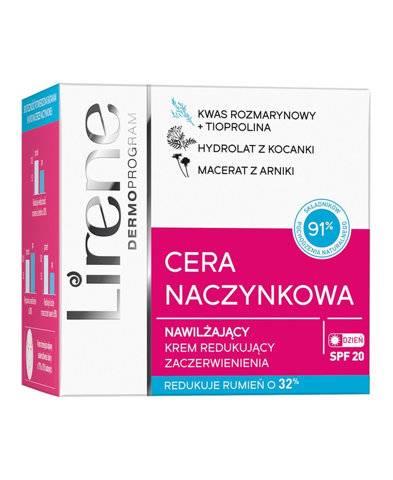 Lirene Cera Naczynkowa Krem do Twarzy Nawilżający Redukujący Zaczerwienienia to kompleksowy produkt pielęgnacyjny, który wzmacnia, nawilża i chroni skórę, jednocześnie redukując widoczność naczynek i zaczerwienień, przywracając skórze zdrowy i jednolity wygląd.