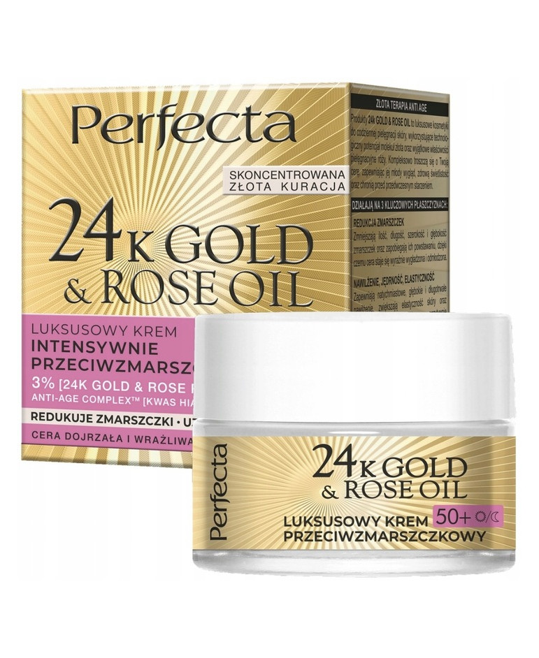 Linia 24k GOLD & ROSE OIL to wyjątkowa złota terapia anti-age, oparta na synergii molekuł złota oraz pielęgnacyjnych właściwości róży. Kosmetyki z tej serii działają kompleksowo na trzech płaszczyznach: skutecznie redukują widoczne zmarszczki, zapewniają intensywne nawilżenie, jędrność i elastyczność skóry, a także odbudowują jej barierę hydrolipidową.