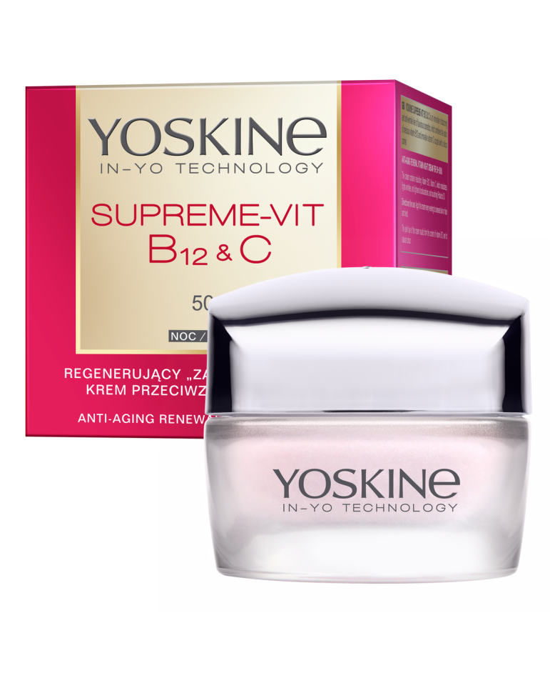 Yoskine Suprema Vit 12 & C – to prekursorska, nawilżająco-przeciwzmarszczkowa linia luksusowych kosmetyków, w której połączono działanie cennej dla skóry witaminy B12 oraz nowatorskiej witaminy C skorelowanej z nośnikiem krzemowym. Niczym potężny, witaminowy zastrzyk młodości, zapewnia skórze piękny, zdrowy koloryt i rozjaśnienie przebarwień.