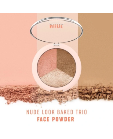Zestaw zawiera róż i puder brązujący do korygowania rysów twarzy oraz puder rozświetlający z rozpraszającymi światło drobinkami.
