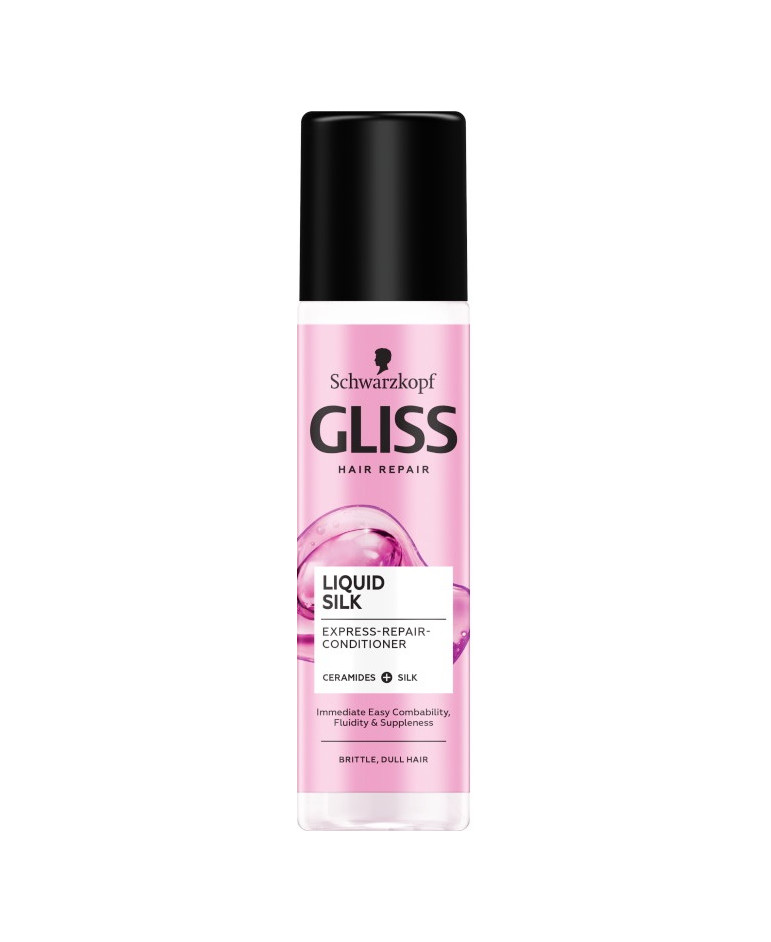 Formuły Gliss Kur z keratynowym serum naprawiają istniejące zniszczenia, przeciwdziałając przyszłym uszkodzeniom. Aby odpowiadać na potrzeby włosów matowych i łamliwych, ekspresowa odżywka regeneracyjna Liquid Silk z płynnym jedwabiem wygładza powierzchnię włosów, wzmacniając ich naturalny blask.