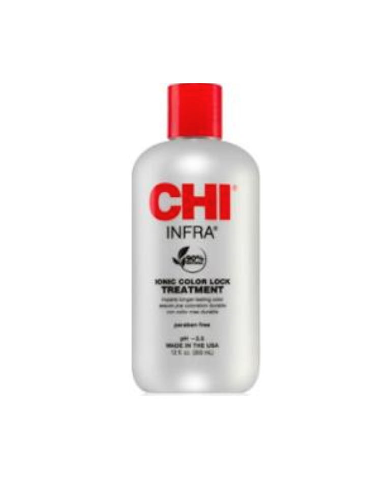 CHI Ionic Color Lock Treatment to odżywka do pielęgnacji włosów farbowanych. Intensyfikuje i przedłuża efekty koloryzacji. Zapobiega przedwczesnemu wypłukiwaniu się pigmentu oraz blaknięciu koloru. Dzięki niej odcień jest nasycony i świetlisty przez wyjątkowo długi czas.