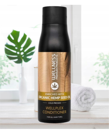 Wellplex odżywka to drugi krok w naszym innowacyjnym systemie do pielęgnacji włosów, który odwraca wewnętrzne uszkodzenia keratyny w strukturze włosa nawet trzykrotnie, tworząc dodatkowe wiązania wodorowe i jonowe, które korzystnie wpływają na kompleks włosów. Wellplex szampon, odżywka, maska, serum i maska bez spłukiwania, w sprayu są nasycone organicznym tłoczonym na zimno olejem z nasion konopi, włóknem plex i kwasem hialuronowym. Efekty zdrowych, mocnych i zregenerowanych włosów są widoczne już po pierwszym użyciu.