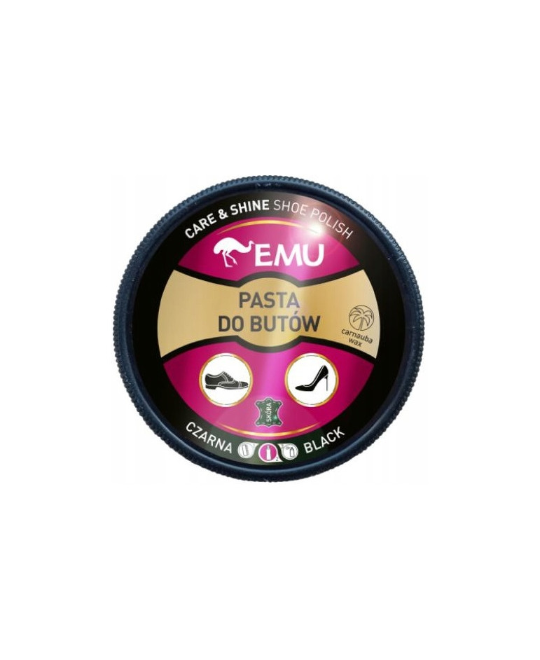 Klasyczna pasta do butów w kolorze czarnym, zamknięta w puszce. Pozwala na pielęgnację obuwia ze skóry licowej i ekologicznej. Wzmacnia i uelastycznia skórę, pogłębia jej kolor i nadaje połysk.