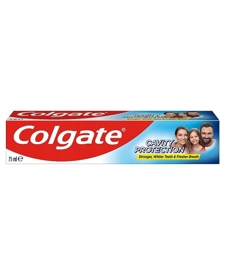 Pasta do zębów Colgate® Cavity Protection to kompleksowa formuła, która zapewnia kompleksową pielęgnację zarówno zębów, jak i dziąseł. Regularne stosowanie pasty pomaga skutecznie usuwać osad nazębny oraz resztki jedzenia, jednocześnie dbając o zdrowie dziąseł i śluzówki jamy ustnej.