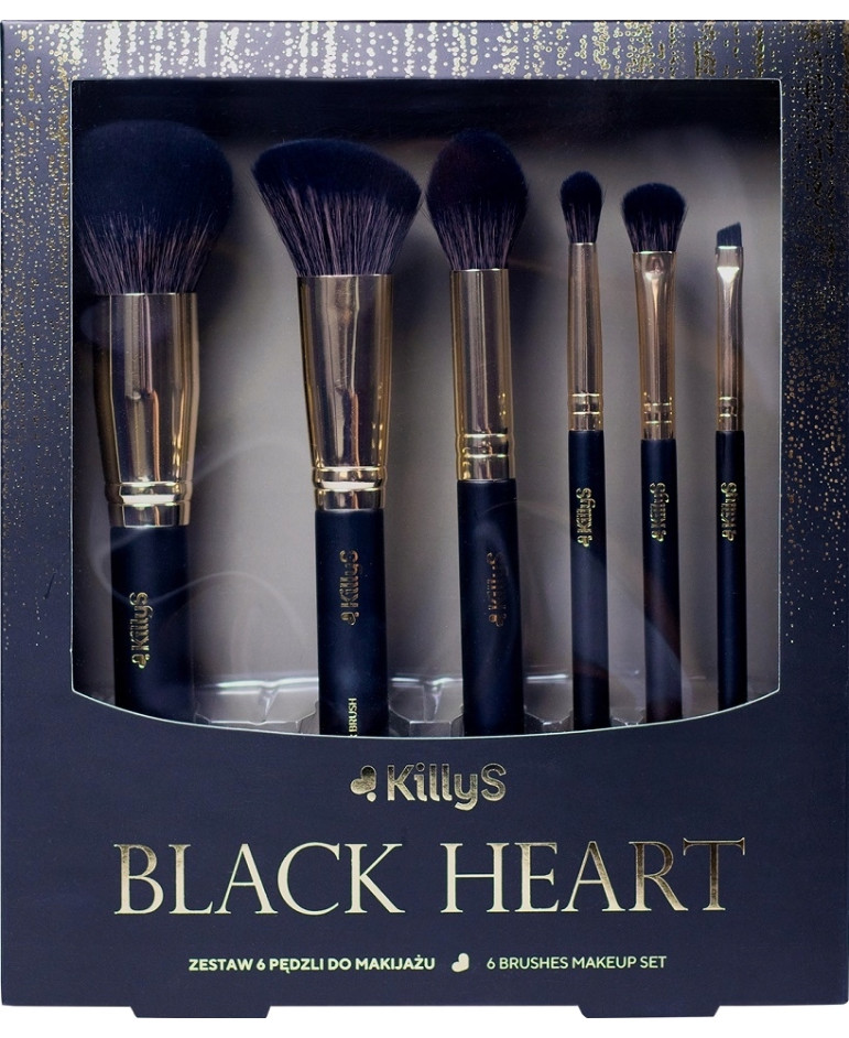 Kolekcja Black Heart to zbiór eleganckich pędzli w kolorze złota i czerni, skierowany zarówno do profesjonalistów, jak i miłośników makijażu. W skład zestawu wchodzi 3 duże pędzle do twarzy oraz 3 mniejsze do makijażu oka, spełniające różnorodne potrzeby aplikacji kosmetyków w płynie, kremie, kamieniu i produktach sypkich.