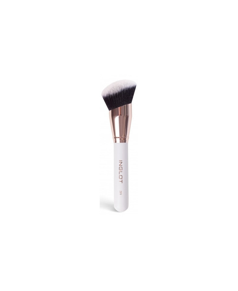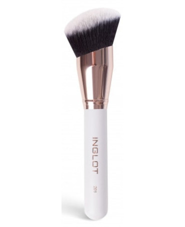 Duży, ścięty pędzel do aplikacji podkładu. Delikatne, syntetyczne, zbite włosie pozwala równomiernie rozprowadzić produkt na powierzchni całej twarzy i budować stopień krycia, nie pozostawiając plam.