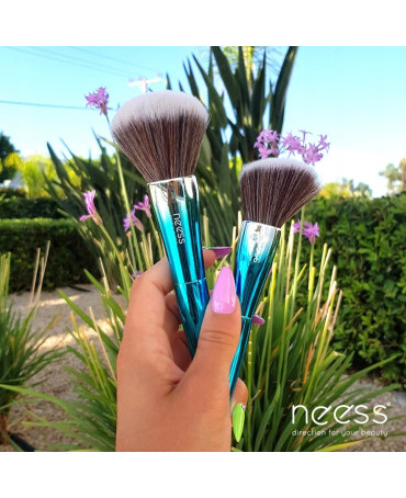 Elegancki design: Niebieska, metalizowana rączka dodaje pędzlowi wyjątkowego wyglądu.