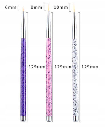 Poznaj niezwykły zestaw profesjonalnych pędzelków do stylizacji paznokci. Pędzelki można wykorzystać do domowego jak i profesjonalnego użytku.Ten śliczny komplet pędzelków do wykonywania zdobień posiada uroczy marmurkowy design.