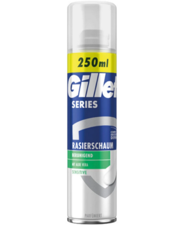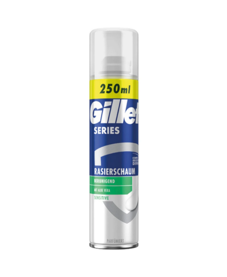 Poznaj niezwykłą gładkość golenia z painką do golenia dla mężczyzn Gillette Series Sensitive. Formuła o potrójnym działaniu, z aloesem, zmiękcza zarost, nawilża i pomaga chronić skórę podczas golenia.