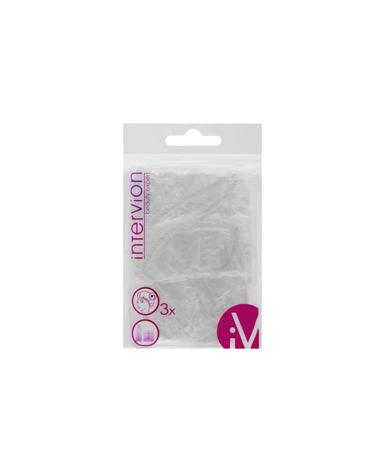 Wielofunkcyjny, foliowy czepek kosmetyczny wykończony elastyczną gumką.