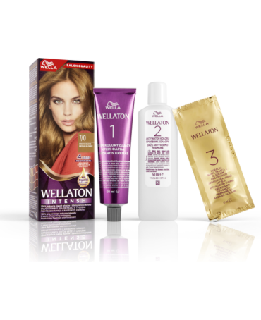 Krem trwale koloryzujący Wellaton pozwala zachować oznaki młodego wyglądu włosów i cieszyć się nimi przez długi czas. Molekuły zawarte w recepturze kremu koloryzującego powodują powstawanie refleksów świetlnych wzmacniających efekt intensywności oraz głębi koloru. Odżywka wzbogacona wyciągiem z palmy kokosowej pielęgnuje włosy: chroni i nawilża włosy, dzięki czemu lśnią one zdrowym blaskiem, są miękkie i pełne witalności.