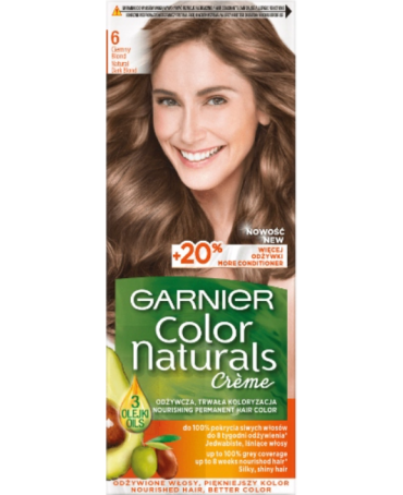 Formuła kremu koloryzującego Garnier Color Naturals wzbogacona w olejek z oliwek wnika we wnętrze włosa, aby wydobyć długotrwały kolor z lśniącymi refleksami i zapewnić 100% pokrycia siwych włosów. Kremowa formuła z 3 olejkami odżywia i wygładza włókno włosa: włosy odżywione są elastyczne i miękkie w dotyku.