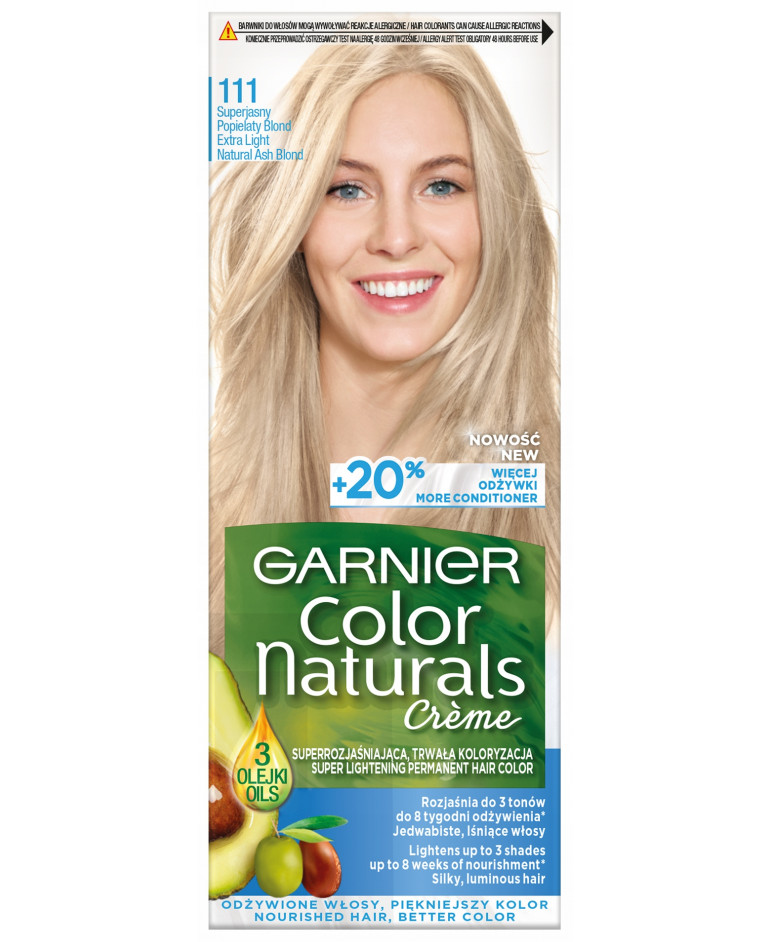 Formuła kremu koloryzującego Garnier Color Naturals wzbogacona w olejek z oliwek wnika we wnętrze włosa, aby wydobyć długotrwały kolor z lśniącymi refleksami i zapewnić 100% pokrycia siwych włosów. Kremowa formuła z 3 olejkami odżywia i wygładza włókno włosa: włosy odżywione są elastyczne i miękkie w dotyku.