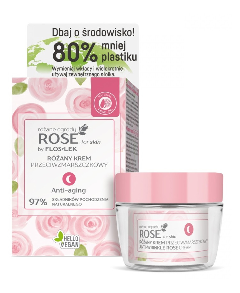Krem przeciwzmarszczkowy na noc, który zapewnia błyskawiczne nawilżenie i jednocześnie głębokie odżywienie skóry, bez efektu obciążenia. Produkt przynosi natychmiastową ulgę przesuszonej i ściągniętej cerze. Idealnie sprawdzi się u osób, które zmagają się ze zmarszczkami, utratą jędrności oraz równowagi nawilżenia skóry. Upojny zapach świeżych róż sprzyja wieczornemu relaksowi oraz wycisza zmysły i polepsza samopoczucie.