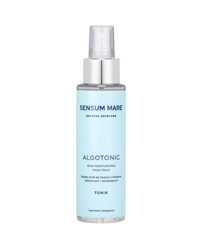 Bogaty tonik do twarzy Algotonic stanowi pierwszy krok w codziennej pielęgnacji skóry twarzy. Unikalne połączenie wody z lodowca norweskiego i pięciu rodzajów alg morskich odżywia skórę dostarczając jej witamin, minerałów i pierwiastków śladowych. Niskocząteczkowy kwas hialuronowy przenika warstwę rogową skóry i dogłębnie ją nawilża oraz zapobiega jej wysuszeniu. Organiczna woda z chabru bławatka ma działania tonizujące, przeciwzapalne i łagodzące.