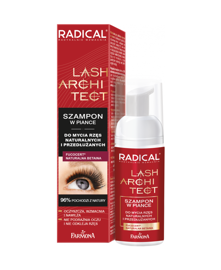 Składniki takie jak Fucocert®, polisacharyd pozyskiwany z surowców roślinnych poprzez fermentację biotechnologiczną, intensywnie koi, nawilża i wygładza. Naturalna betaina, silnie nawilżający aminokwas pozyskiwany z buraka cukrowego, zmniejsza efekt drażniący detergentów, a jednocześnie wzmacnia rzęsy i brwi. Ekstrakt ze skrzypu poprawia kondycję oraz wygląd rzęs i brwi. Łagodne detergenty dokładnie oczyszczają, nie podrażniając oczu, nie szkodząc rzęsom ani klejowi. To kompleksowa pielęgnacja, która sprawia, że rzęsy zachowują swoją siłę i zdrowy wygląd.