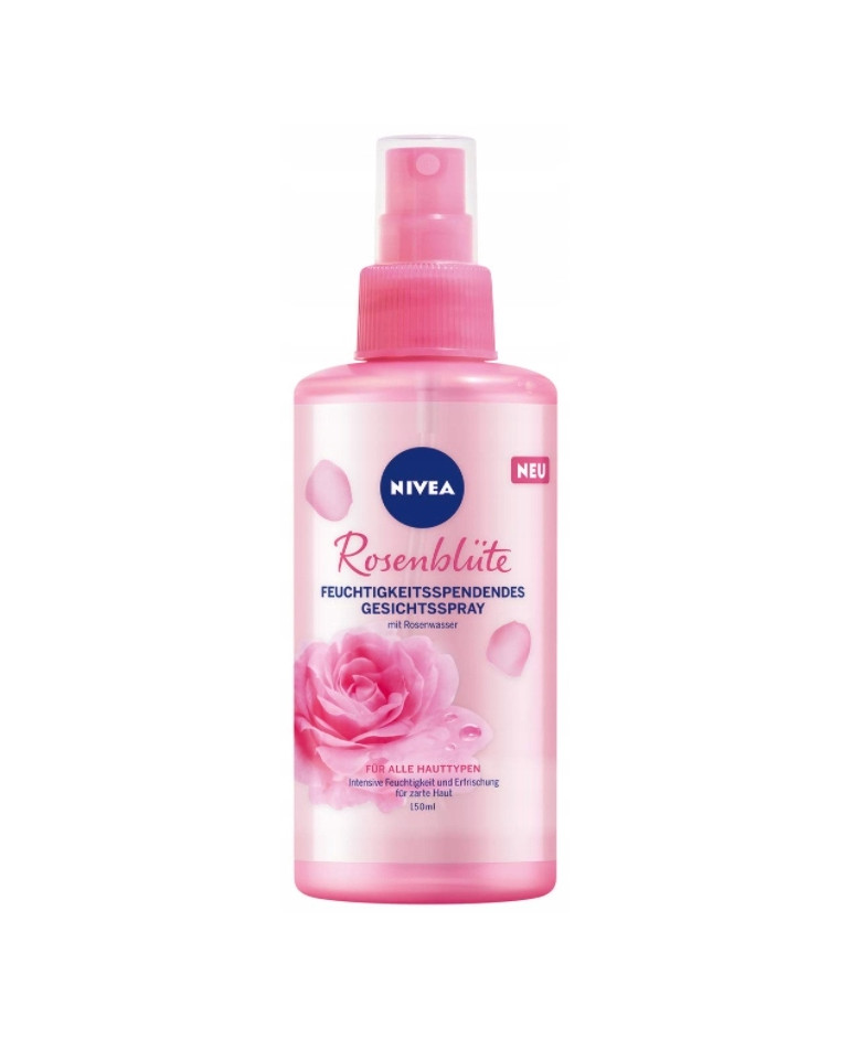 Nivea Rose Care Hydrating Face Mist zawiera wszystkie zalety antyoksydacyjne organicznej wody różanej. Intensywnie nawilża skórę, nie pozostawiając uczucia lepkości. Idealnie nadaje się do ponownego nakładania w ciągu dnia lub w podróży, a także do przygotowania i utrwalenia makijażu.