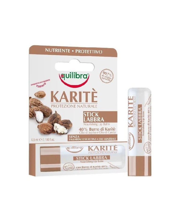Balsam do ust Equilibra z masłem shea (40%) pokrywa usta delikatną powłoką ochronną. Dogłębnie odżywia skórę ust. W zimie chroni usta od mrozu, zaś w ciepłe dni nawadnia i łagodzi podrażnione słońcem i wiatrem wargi.