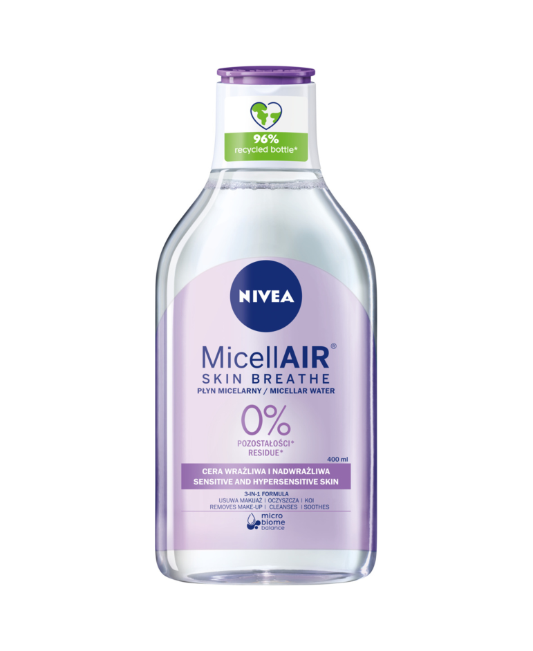 Pielęgnujący Płyn Micelarny do cery wrażliwej i nadwrażliwej. Płyn sprawia, że skóra jest delikatna, miękka oraz wygląda na zdrową i nawilżoną. Zawarte w nim micele działają jak magnes, usuwając makijaż i zanieczyszczenia, dzięki temu płyn skutecznie i łagodnie oczyszcza skórę bez konieczności pocierania.