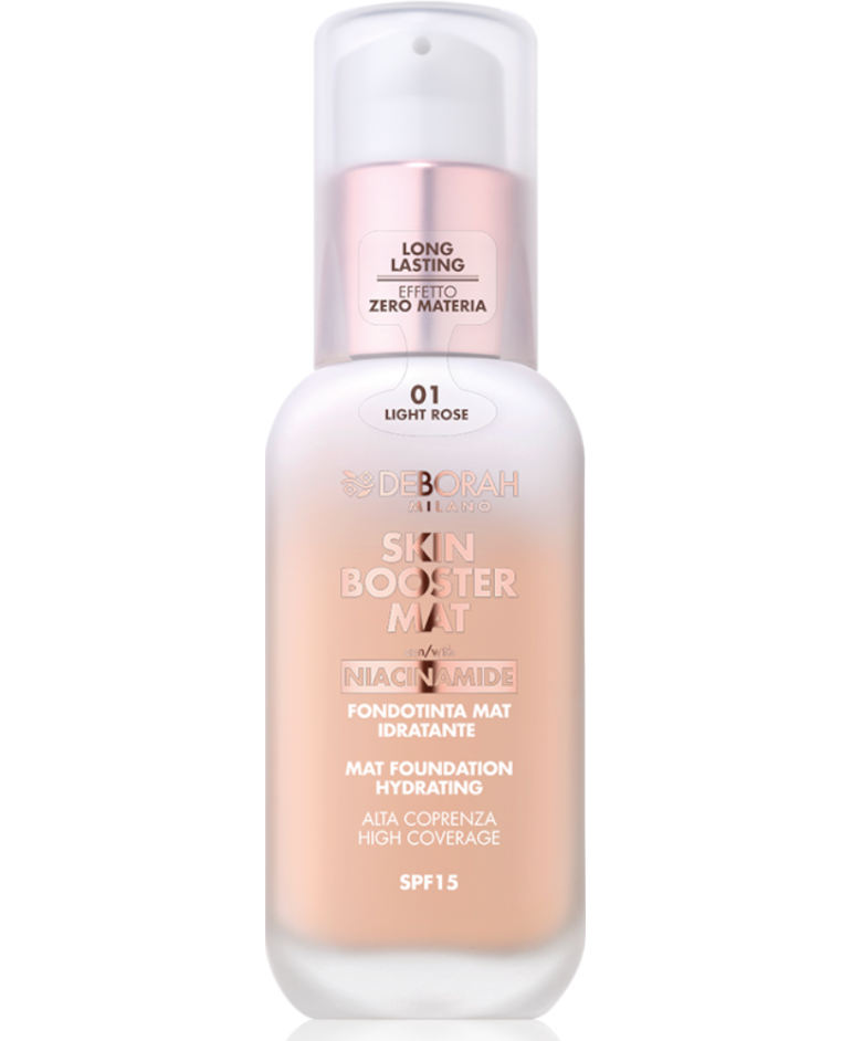 Skin Booster Mat Foundation ma nawilżającą formułę i zapewnia nieskazitelne, długotrwałe krycie makijażu, a jednocześnie pielęgnuje skórę. Lekka konsystencja nowej generacji bez wysiłku wtapia się w skórę, tworząc ledwo widoczny efekt, który jest superkomfortowy przez cały dzień.