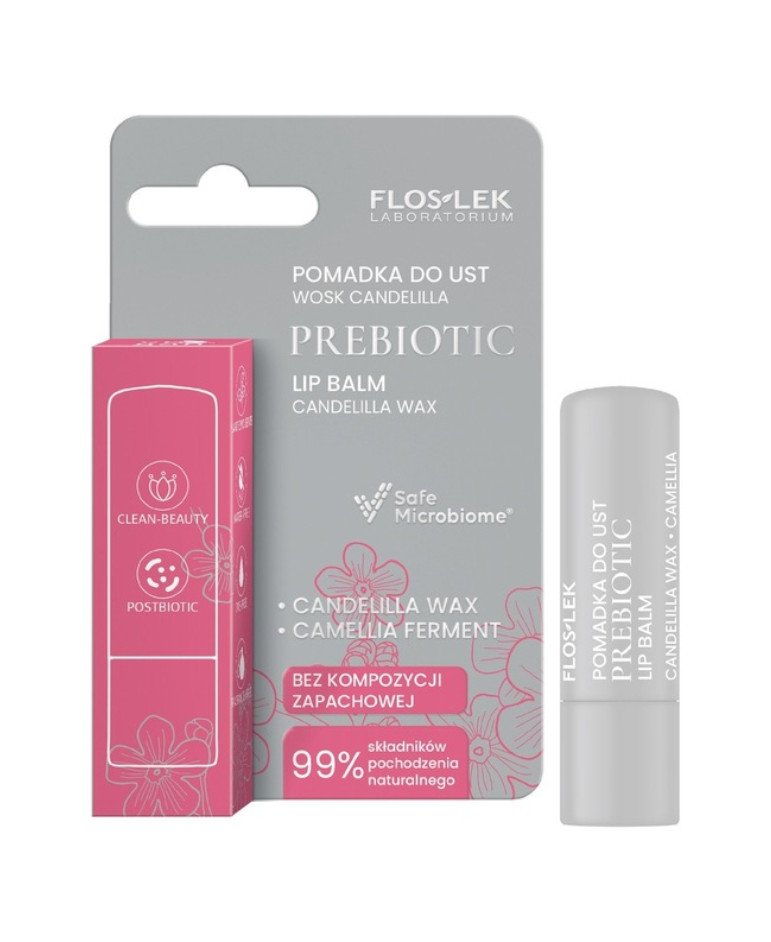 Formuła prebiotycznej pomadki do ust oparta jest o roślinne emolienty o właściwościach łagodzących i regenerujących podrażnioną i spierzchniętą skórę ust. Wosk candelilla wygładza, uelastycznia i ma działanie ochronne a fermentowany olej z Kamelii japońskiej sprzyja naturalnej mikroflorze skóry. Usta stają się gładkie, miękkie i naturalnie piękne.