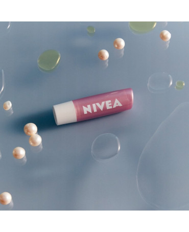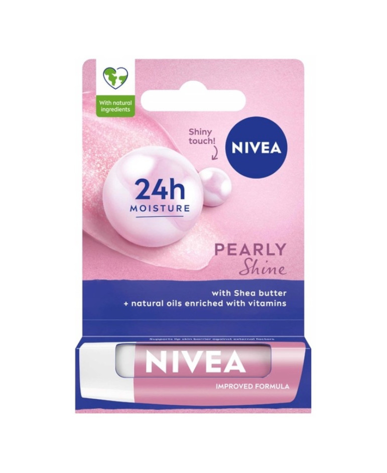 NIVEA Pearly Shine! Wyjątkowa formuła wzbogacona ekstraktami z pereł natychmiast wtapia się w Twoje usta, zapewniając im 24-godzinne* nawilżenie i perłowy połysk.