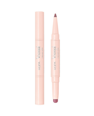Jeden produkt, podwójna funkcjonalność! Ołówek definiujący i modelujący kontur ust, jasna i kremowa pomadka, która sprawi, że będą widocznie pełne i zagęszczone.