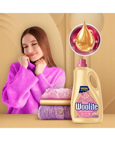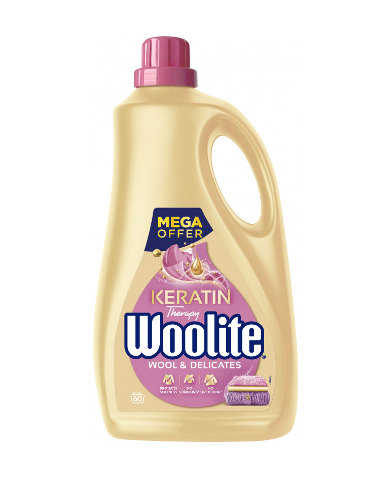 Boisz się, że pranie niszczy Twoje ubrania? Wypróbuj nowy Woolite Keratin Therapy! To jedyny płyn do prania z keratyną, który chroni tkaniny przed utratą kolorów i mechaceniem oraz zapobiega utracie ich kształtu. Zachowaj piękno swoich ubrań z Woolite!