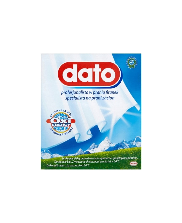 Formuła proszku pozwala nie tylko usunąć brud, ale zapobiega także jego ponownemu osadzaniu na firankach, dzięki czemu są one dłużej czyste. Dato skutecznie pierze już w temperaturach od 30 C również inne tekstylia z włókien syntetycznych, mieszanych lub naturalnych, dlatego doskonale sprawdzi się także w praniu obrusów czy białych prześcieradeł.