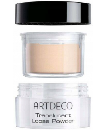 Transparentny sypki puder utrwalający makijaż, pozostawia gładką i świeżą cerę.
