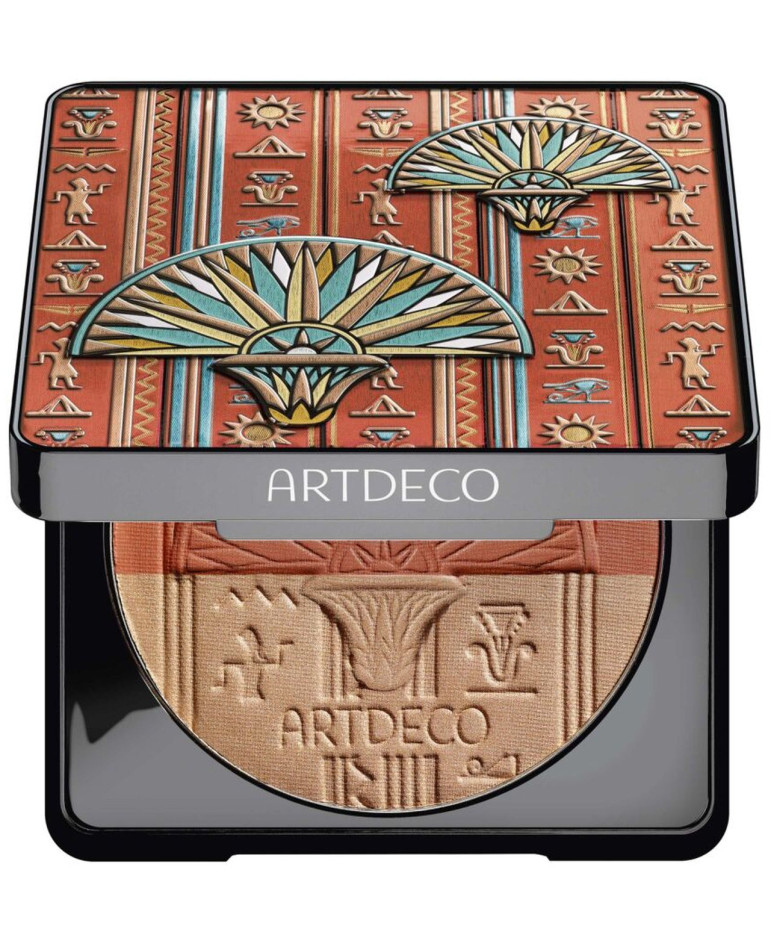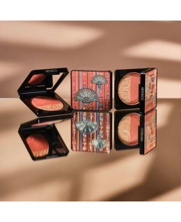 Perłowy rozświetlający róż nadaje elegancki efekt. Natychmiastowe uwalnianie koloru umożliwia łatwe aplikowanie, pozostawiając skórę miękką i aksamitną.Urocze opakowanie o wzornictwie nawiązującym do Egiptu natychmiast tworzy letnią atmosferę i ma wszystkie cechy idealnego dodatku modowego.