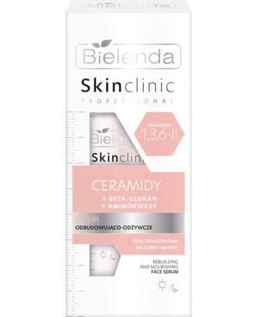 Serum odbudowująco-odżywcze "Ceramidy + Beta Glukan + Aminokwasy" SkinClinic Professional marki Bielenda to profesjonalny kosmetyk do intensywnej regeneracji warstwy hydrolipidowej skóry. To kontynuacja popularnego hitu, który zdobył serca wielu entuzjastów pielęgnacji. Jeśli Twoja skóra jest odwodniona, sucha i straciła elastyczność, to serum stanowi kluczowy krok w jej odnowie. Pozwól nam wprowadzić Cię do świata doskonałej pielęgnacji, który przywróci Twojej skórze blask i zdrowy wygląd.