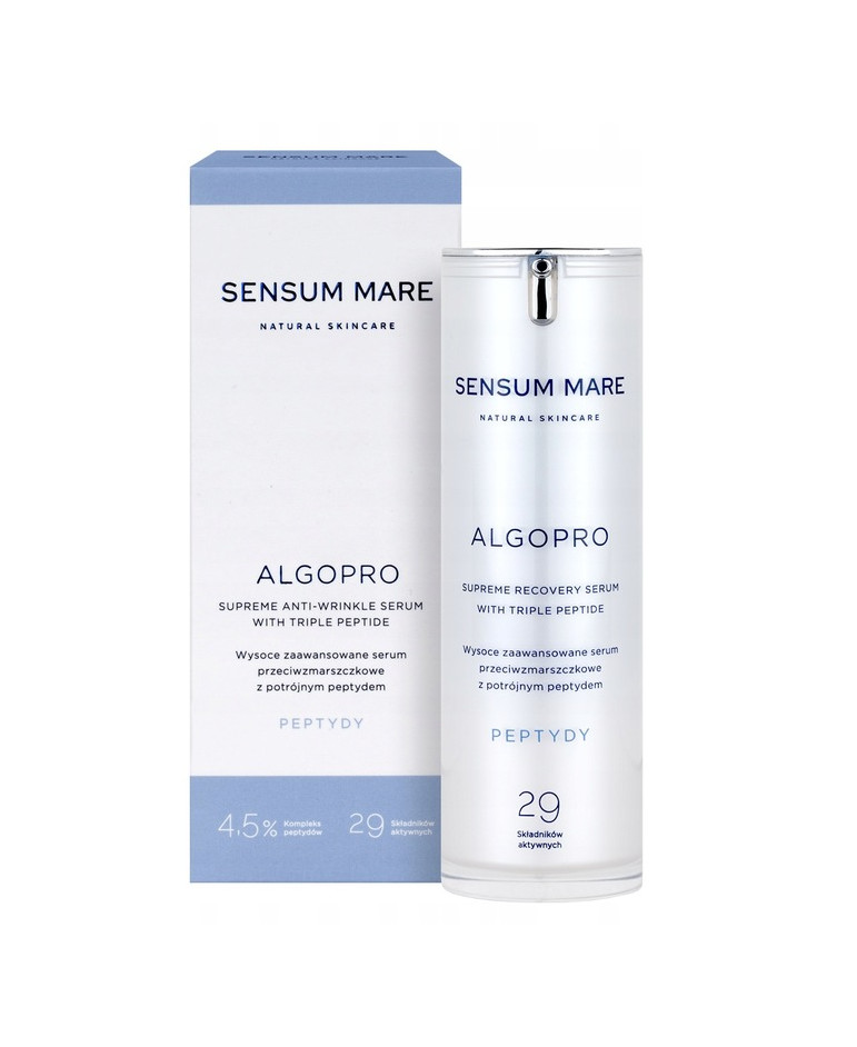 Wysoce zaawansowane serum przeciwzmarszczkowe z potrójnym peptydem 4,5% z linii ALGOPRO zostało stworzone z myślą o specjalistycznej pielęgnacji skóry z oznakami starzenia i zmarszczkami.