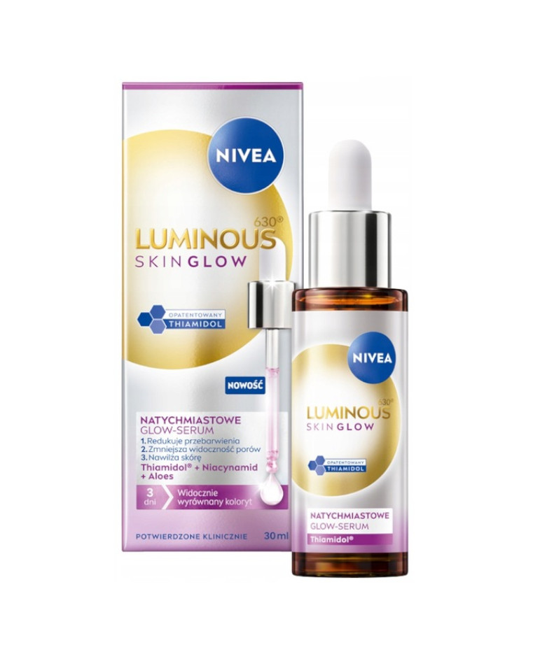 NIVEA LUMINOUS630® SKIN GLOW Natychmiastowe Glow-Serum zapewnia 3 wymiary blasku: