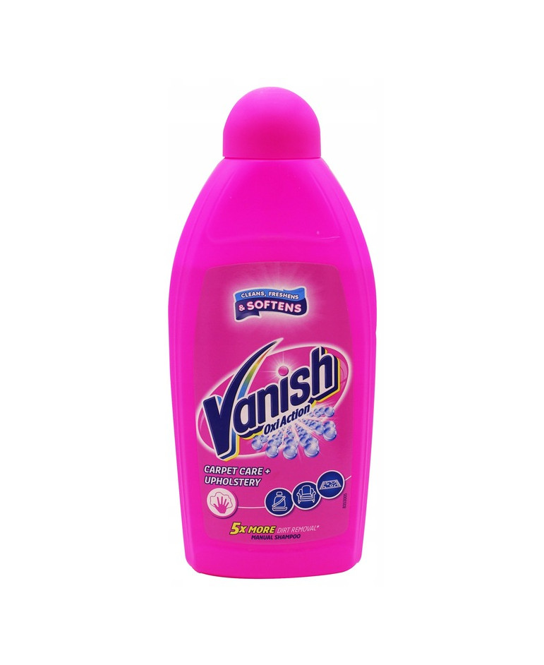 Vanish Oxi Action Szampon do dywanów, tapicerki i wykładzin usuwa aż 5 razy więcej brudu niż podczas zwykłego odkurzania. Dzięki swojemu aromatowi i aktywnym składnikom neutralizuje także nieprzyjemne zapachy. Płyn zmiękcza powierzchnię dywanu i nadaje niebywałej świeżości. Ponadto skutecznie usuwa sierść zwierząt.