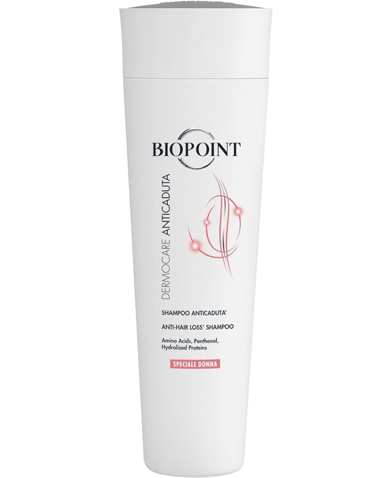 Biopoint prezentuje szampon przeciw wypadaniu włosów dla kobiet, który został opracowany, aby stymulować witalność komórkową, chronić włosy przed starzeniem się i zwiększać ich gęstość. Ten szampon oczyszcza skórę głowy, zachowując naturalne pH.