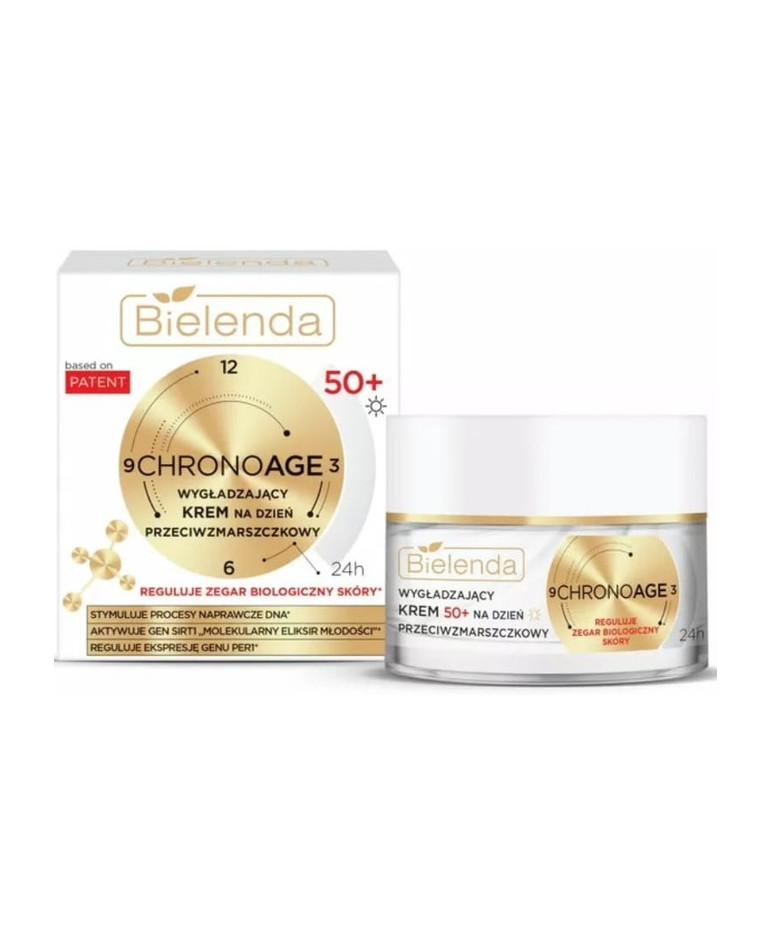 BIELENDA CHRONO AGE WYGŁADZAJĄCY KREM NA DZIEŃ 50+ to ekskluzywny krem do twarzy stworzony specjalnie z myślą o dojrzałej skórze kobiet powyżej 50 roku życia. Jego zaawansowana formuła została opracowana, aby działać jako regulator biologicznego zegara skóry, co jest kluczowe dla zachowania młodego i zdrowego wyglądu.